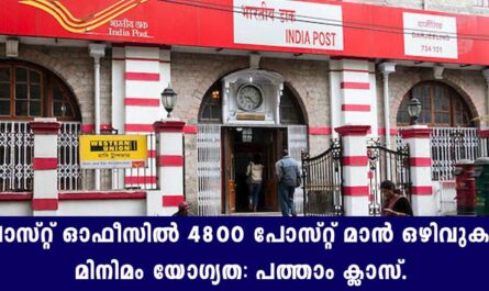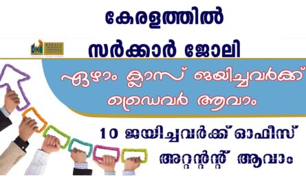 | Data Entry Operator | Degree, Certificate of Data Entry Course Passed by Kerala / Central Government Recognized Institution. One year work experience. |