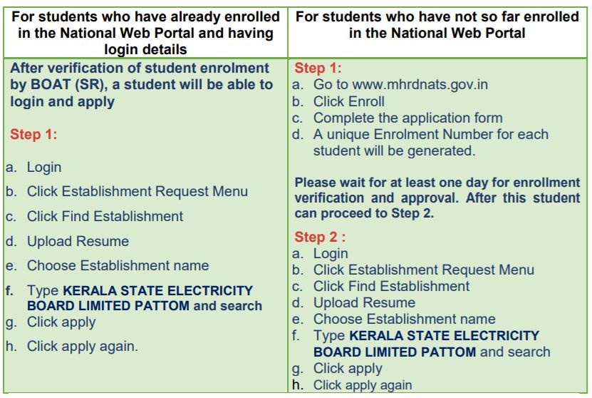 Last date for enrolling in NATS portal in order to apply KERALA STATE ELECTRICITY BOARD LIMITED PATTOM : 07.02.2022