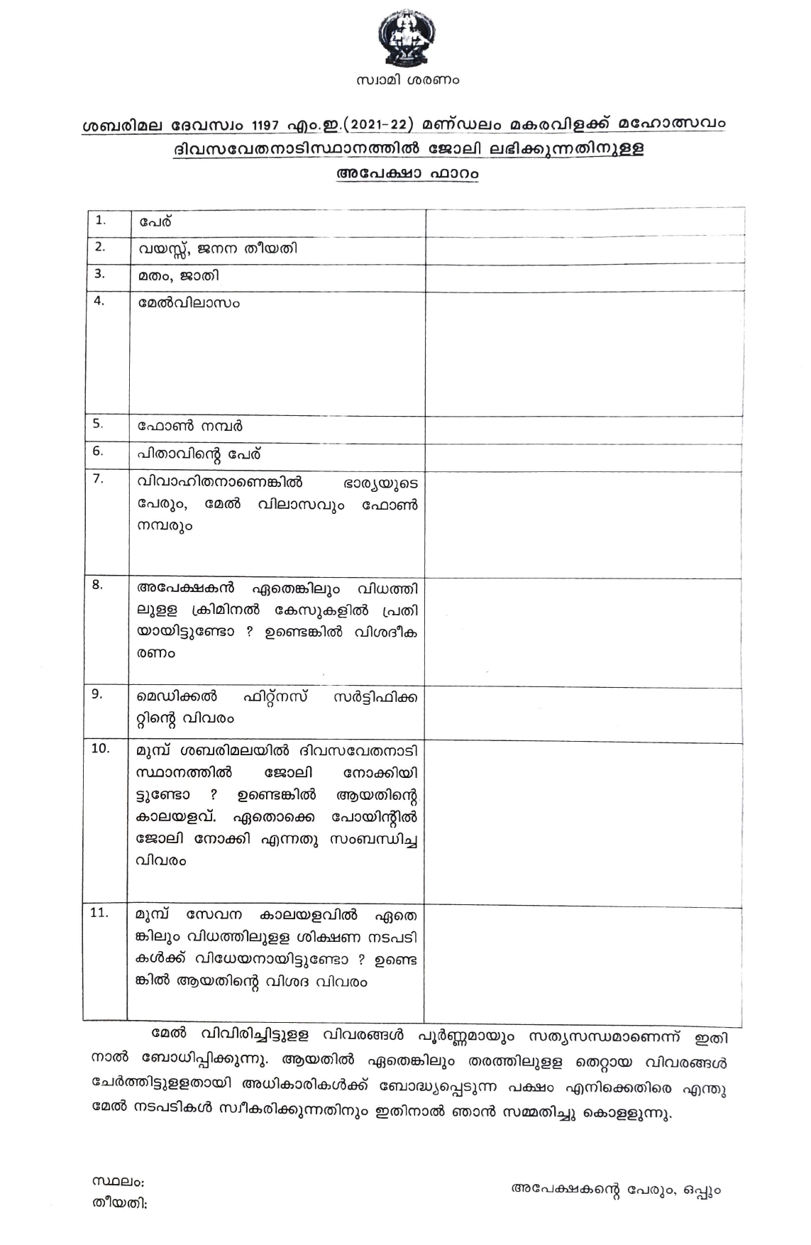 Travancore devaswom board has been released an official notification regarding the recruitment for various various posts on daily wages. Interested male candidates who were belongs to Hindu religion can apply before September 30, 2021. After reading official notification carefully download the application form from the link given below have application in prescribed format.